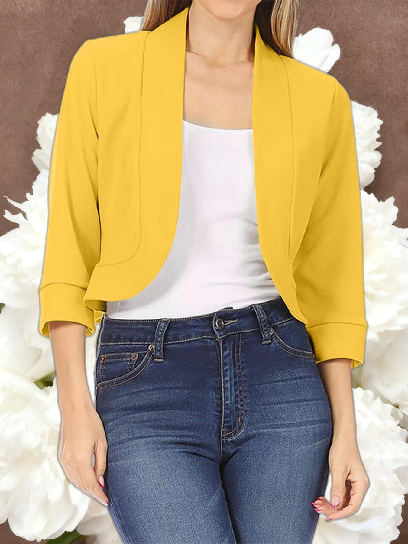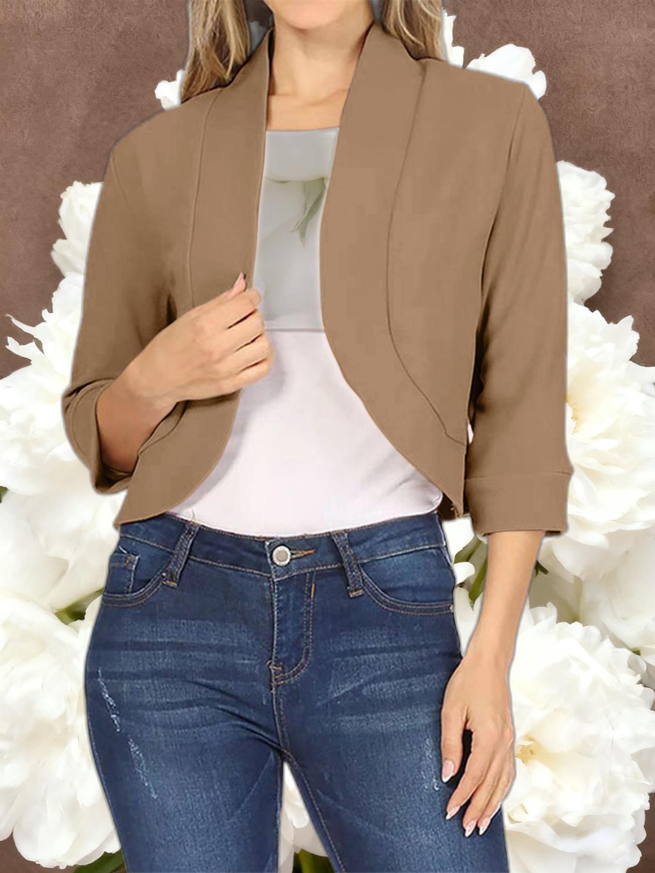 Ladies Fashion Casual Solid Color Three Quarter Sleeve Cardigan | Short Small Coat Coats for Ladies Blazers, Front Open, Spring/Fall Outerwear, Loose Fit, Single Breasted, Solid Color, No