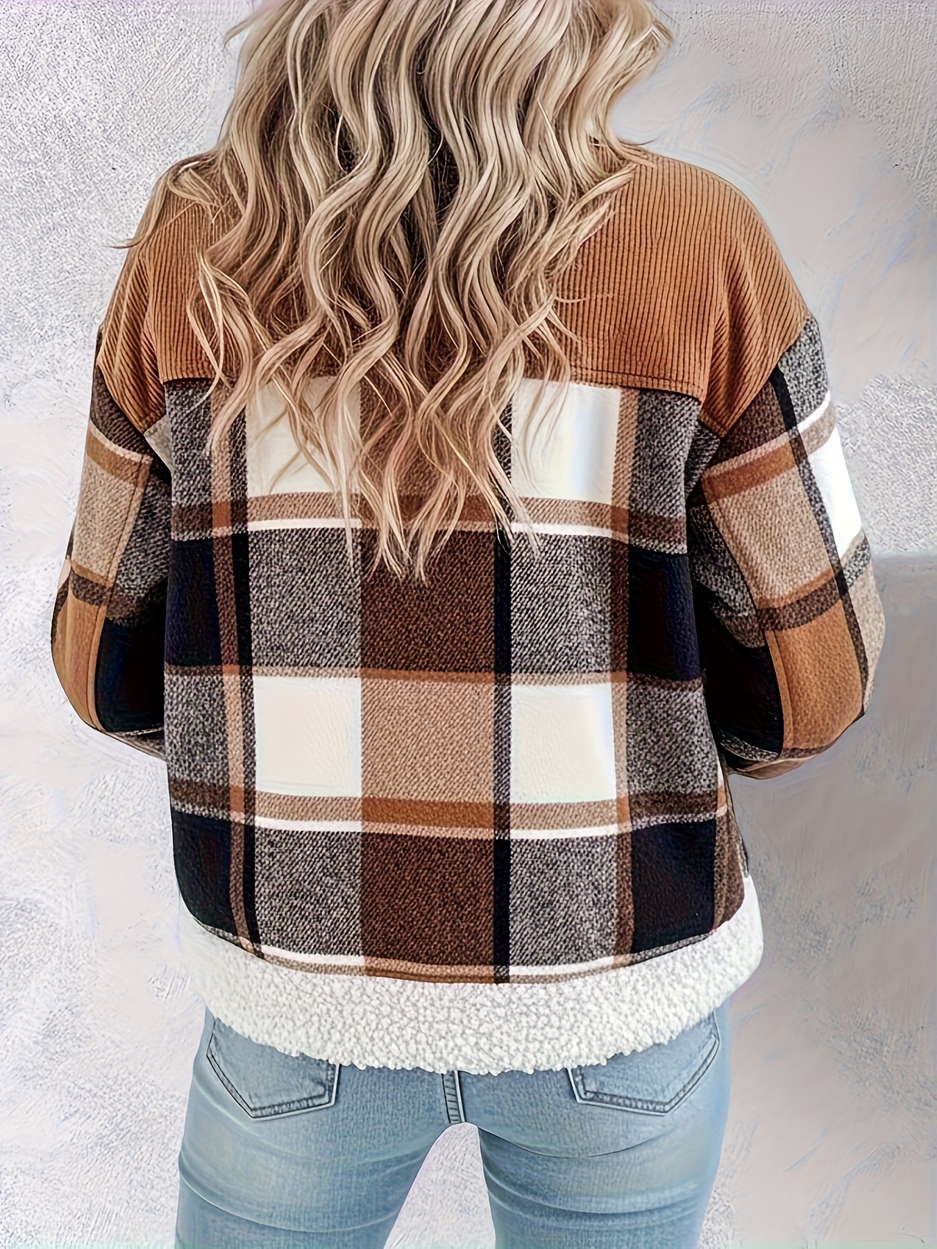 Vintage Corduroy Jacket with Faux Trim - Plaid Lapel Collar Short Coat, Workwear Lapel Pocket & Button Closure, Machine Washable Winter Outerwear (Brown/Beige) - Casual to Smart Casual Coat