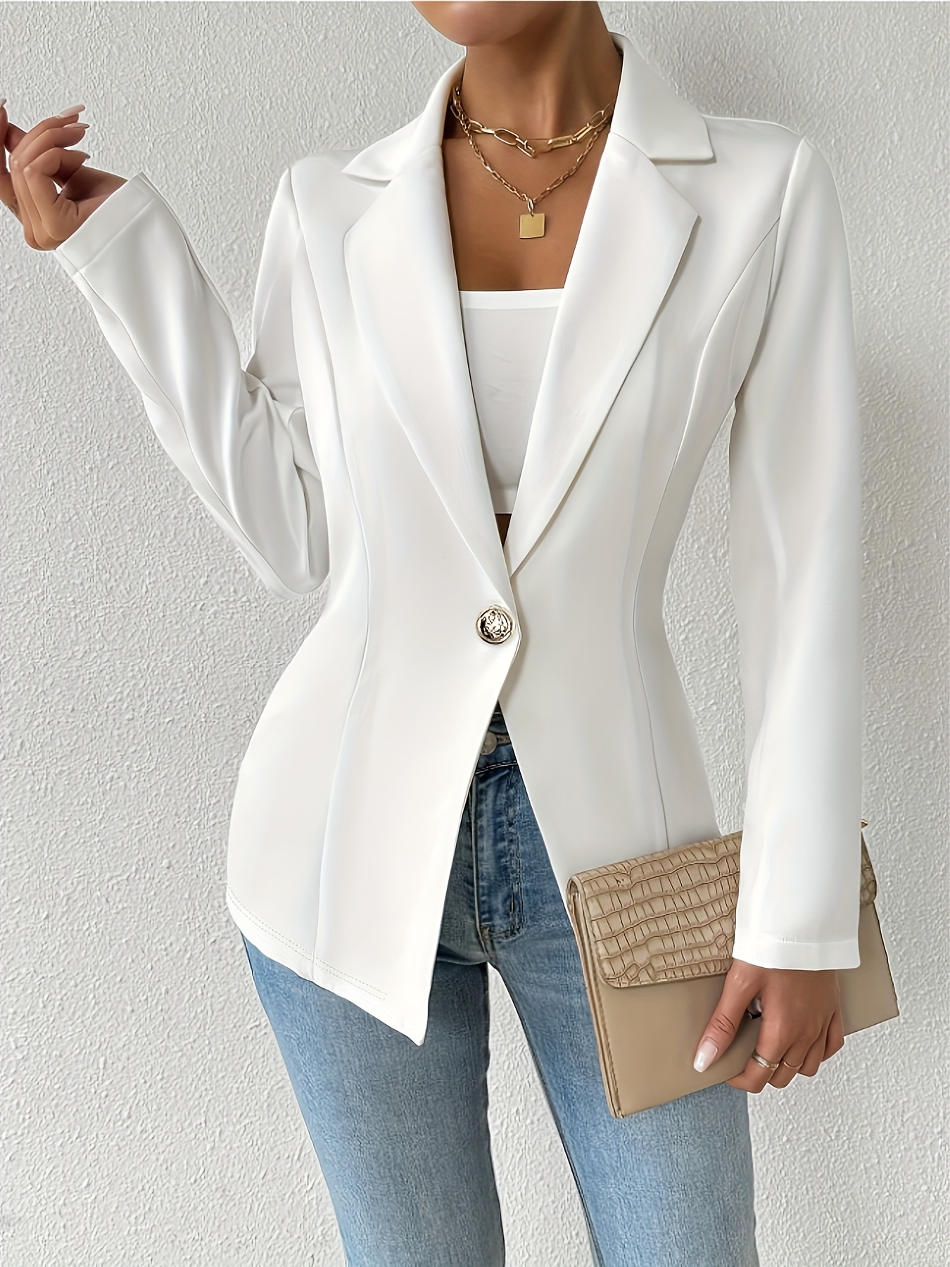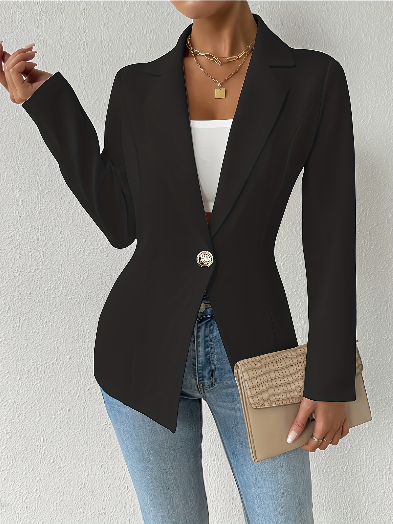 Women'S Elegant Oversized Tailored Blazer Jacket - Solid Color Winter Warmth Long Sleeve Single-Breasted Button Front Closure, Structured Loose Fit Casual to Formal Coat for Office, Business & Casual Attire - Versatile All-Season Outerwear (Autumn/W