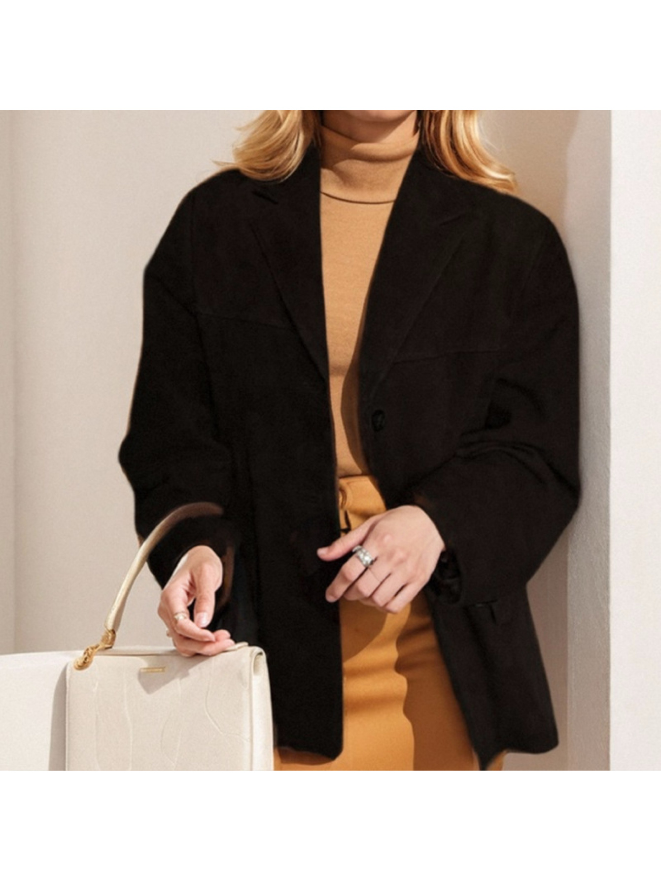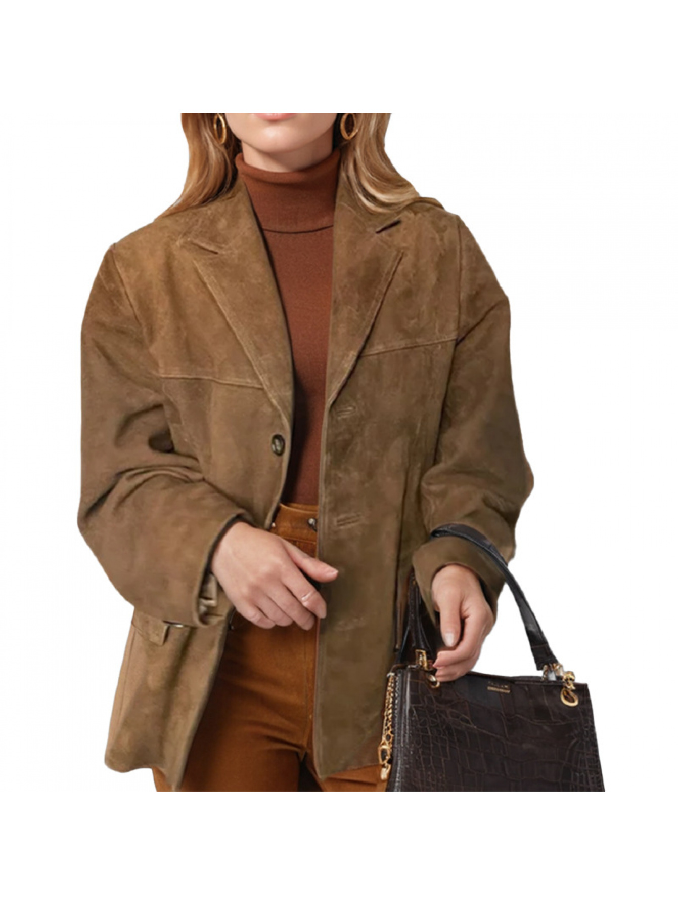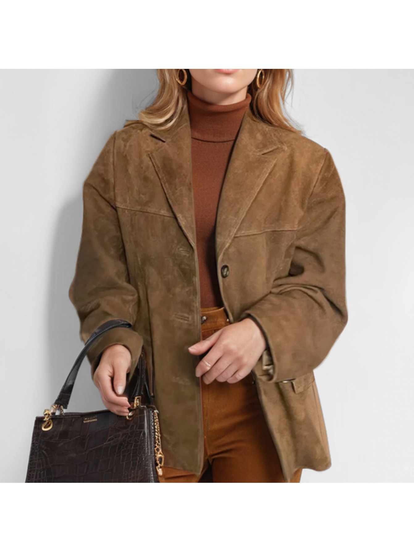Women's Elegant Retro Brown Winter Blazer Jacket - Oversized Collar & Button Front, Single-Breasted Closure, Long Sleeve Coat for Fall/Winter, Casual & Professional Wear (Size Chart Recommended)