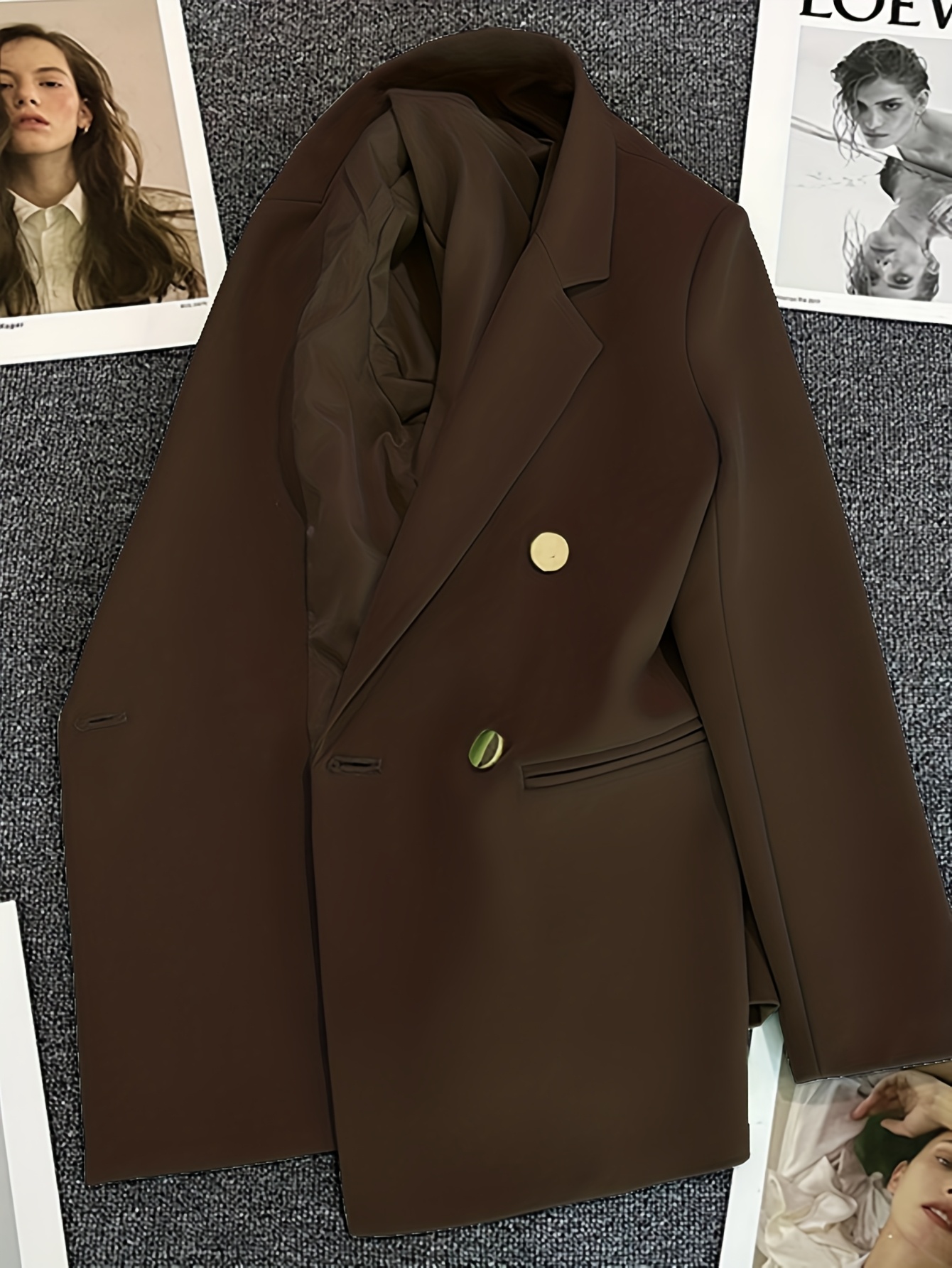 Women's Bright Orange Double-Breasted Lapel Blazer - Oversized Loose-Fit Winter Coat with Pockets, Long Sleeve Tailored Jacket for, Casual & Formal Events, Machine Washable (Vibrant Solid Color Outerwear)