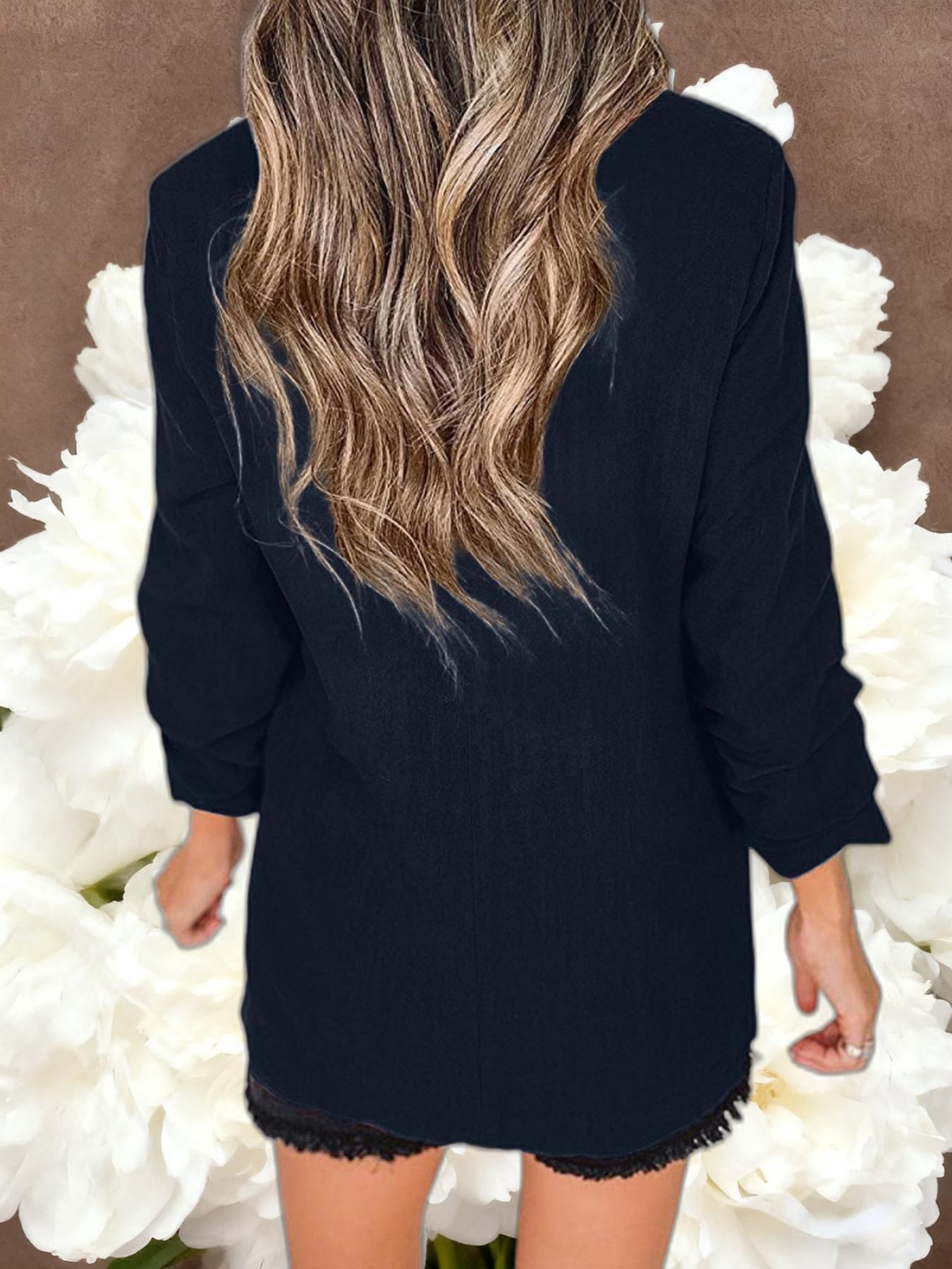 Women Fashion Solid Color Open Front Long Elastic Sleeves Suit Loose Blazers | Chic Outerwear, Single Breasted, Regular Length, Suitable for Everyday & Formal Outfits, Spring/Fall Essential