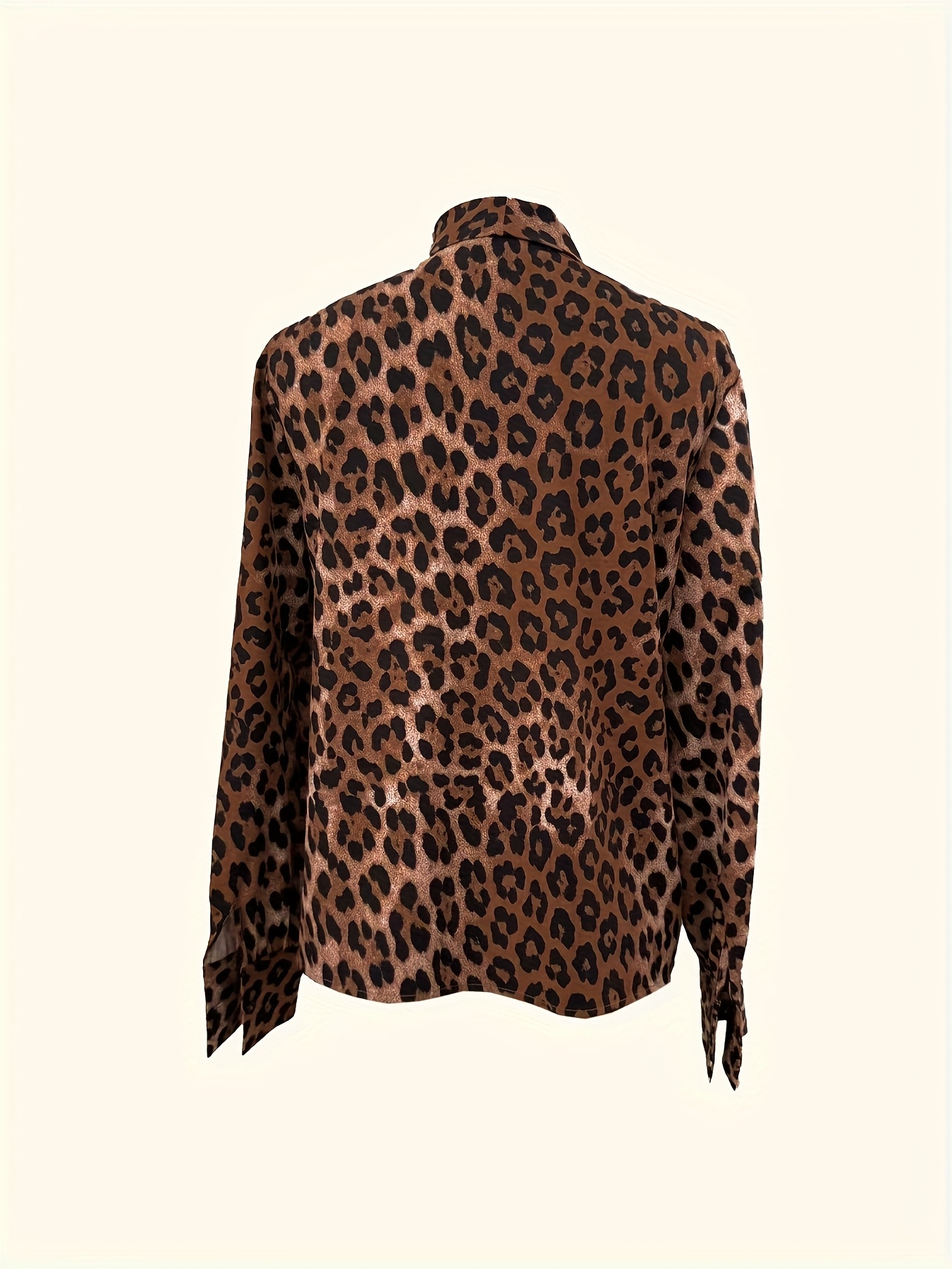 Women's Elegant Bow Tie/ascot Collar Blouse with Button Front - Loose Fit Leopard Print Shirt Jacket, Machine Washable Year-Round Versatile Tops for Casual, Office & Smart-Casual Wear