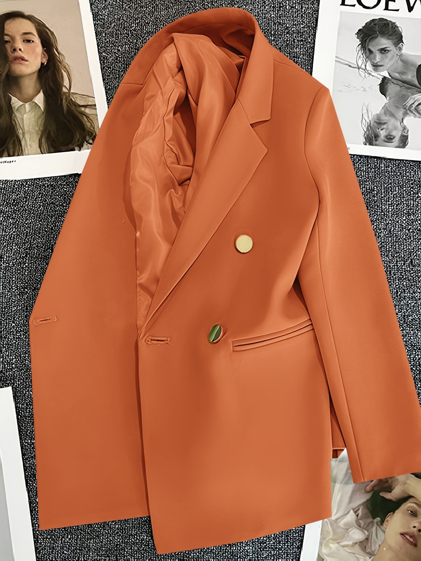 Women's Bright Orange Double-Breasted Lapel Blazer - Oversized Loose-Fit Winter Coat with Pockets, Long Sleeve Tailored Jacket for, Casual & Formal Events, Machine Washable (Vibrant Solid Color Outerwear)