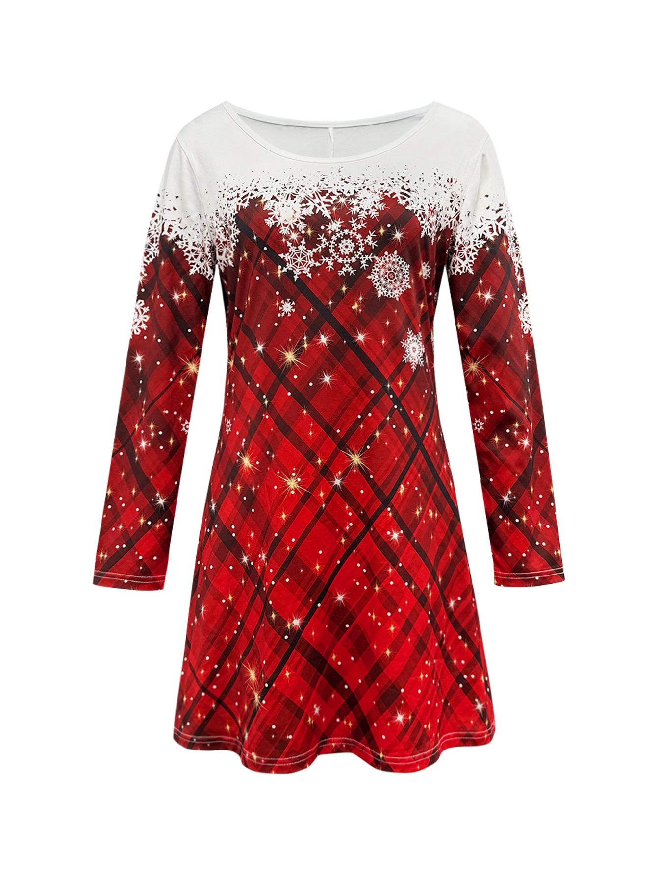 Christmas Autumn and Winter Fashion New Party | Ladies' Elegant Dress, Classic Red Checkered Pattern Thin Women'S Dress, Crew Neck, Perfect for Commuting and Parties
