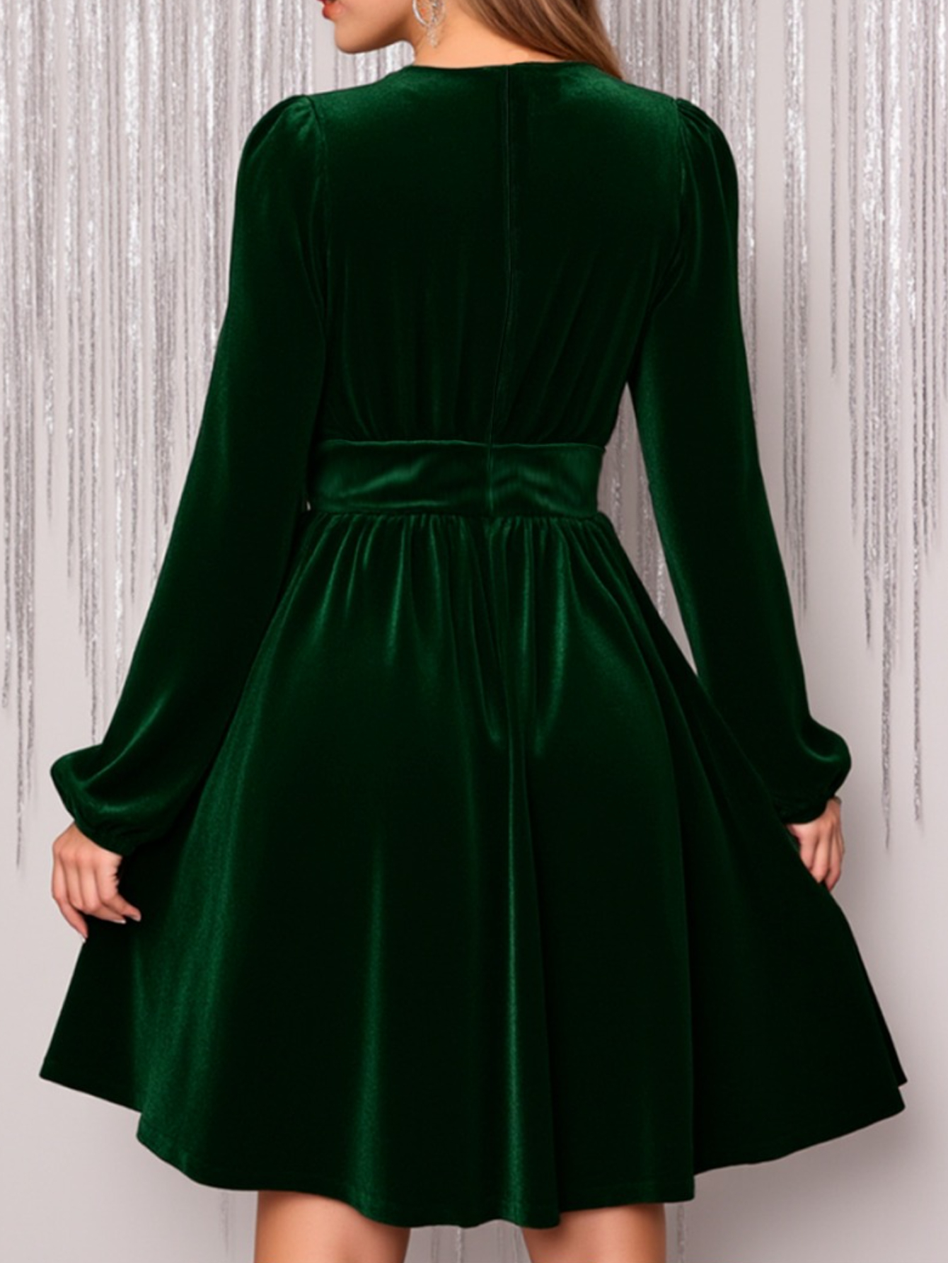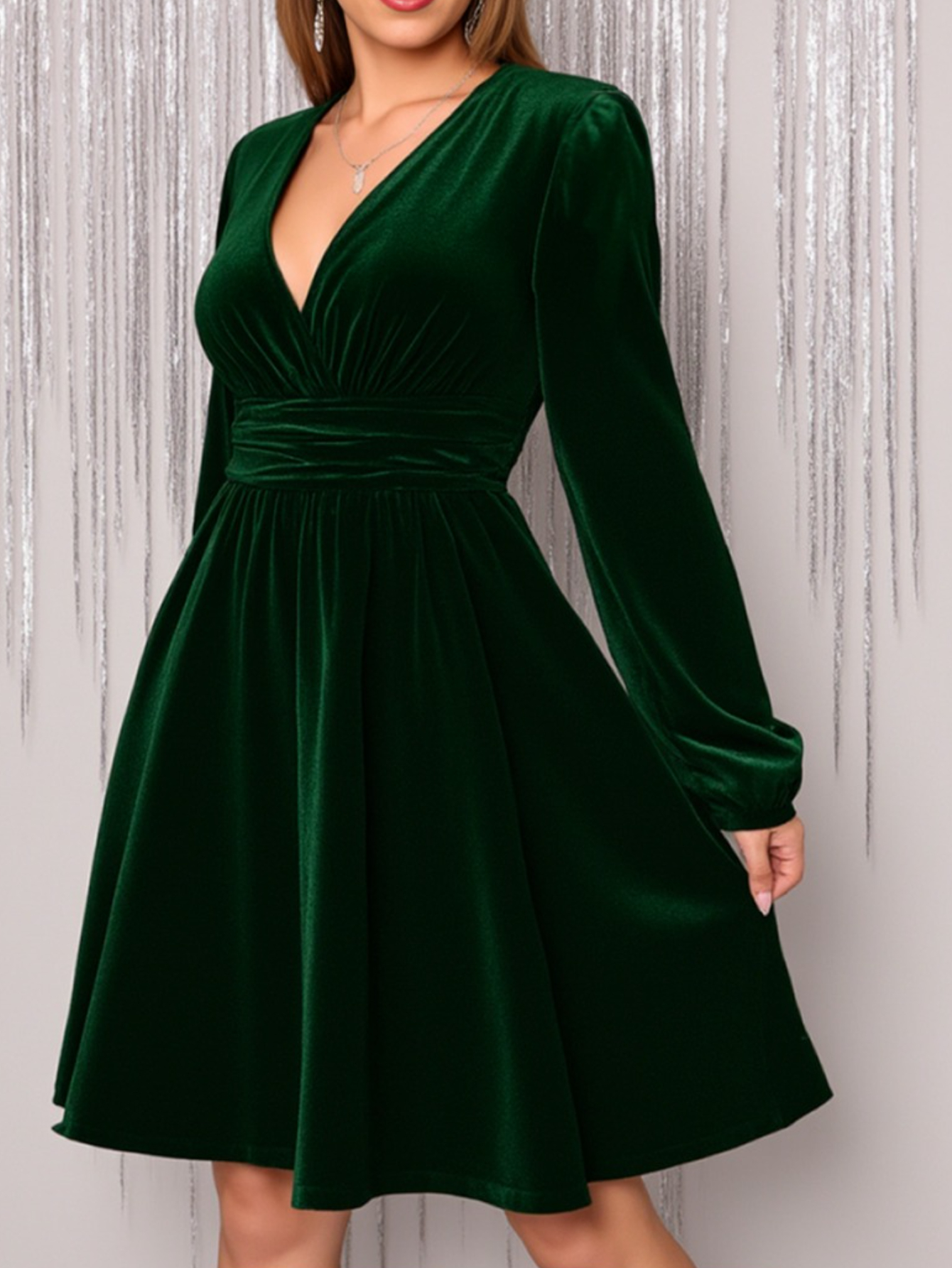 Deep V-Neck Puff Sleeve Velvet Short Dress for Women, Waist-Cinching Vintage Design, Suitable for Parties and Dinners